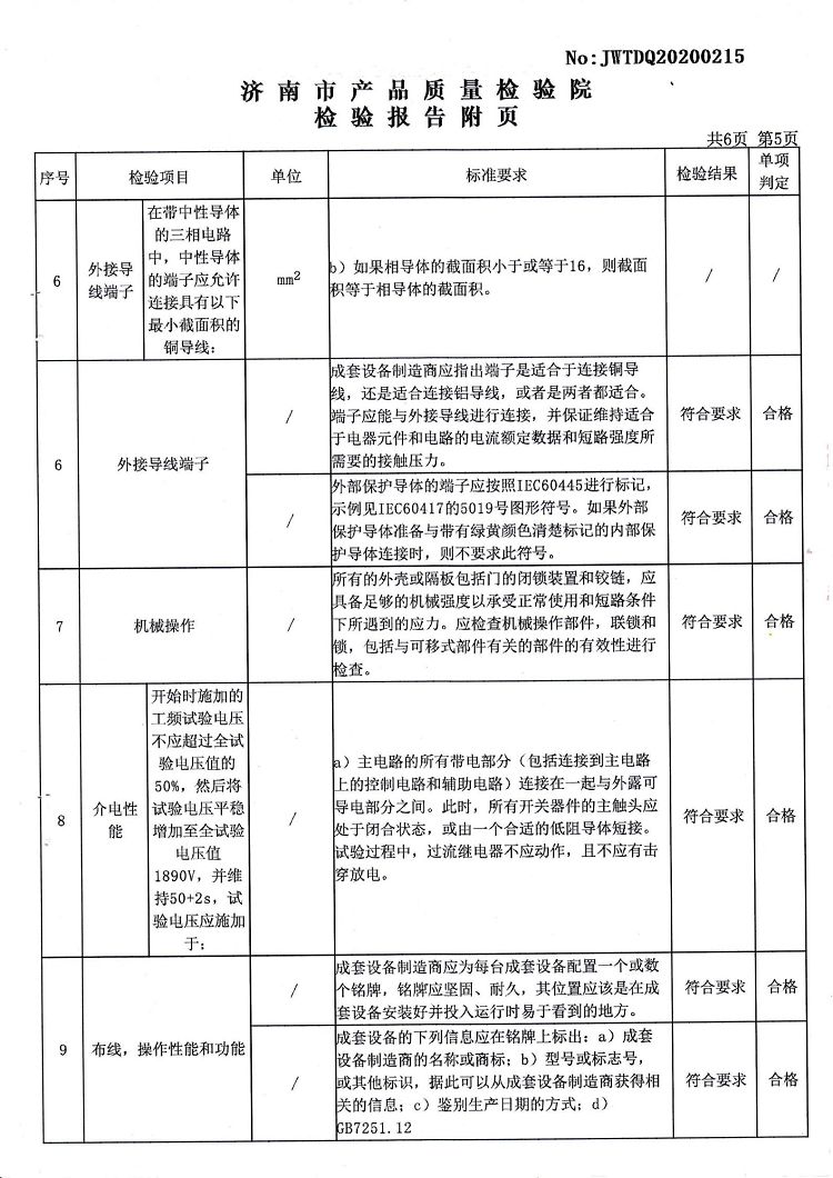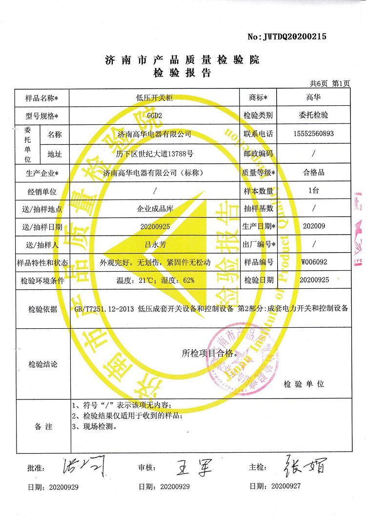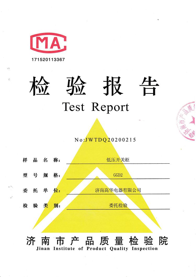 濟南高華電器有限公司 > 榮譽資質(zhì) > 低壓開關(guān)柜GGD2檢測報告